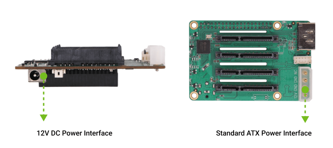 - Podpora externího standardního ATX zdroje pro HDD a ROCK Pi 4