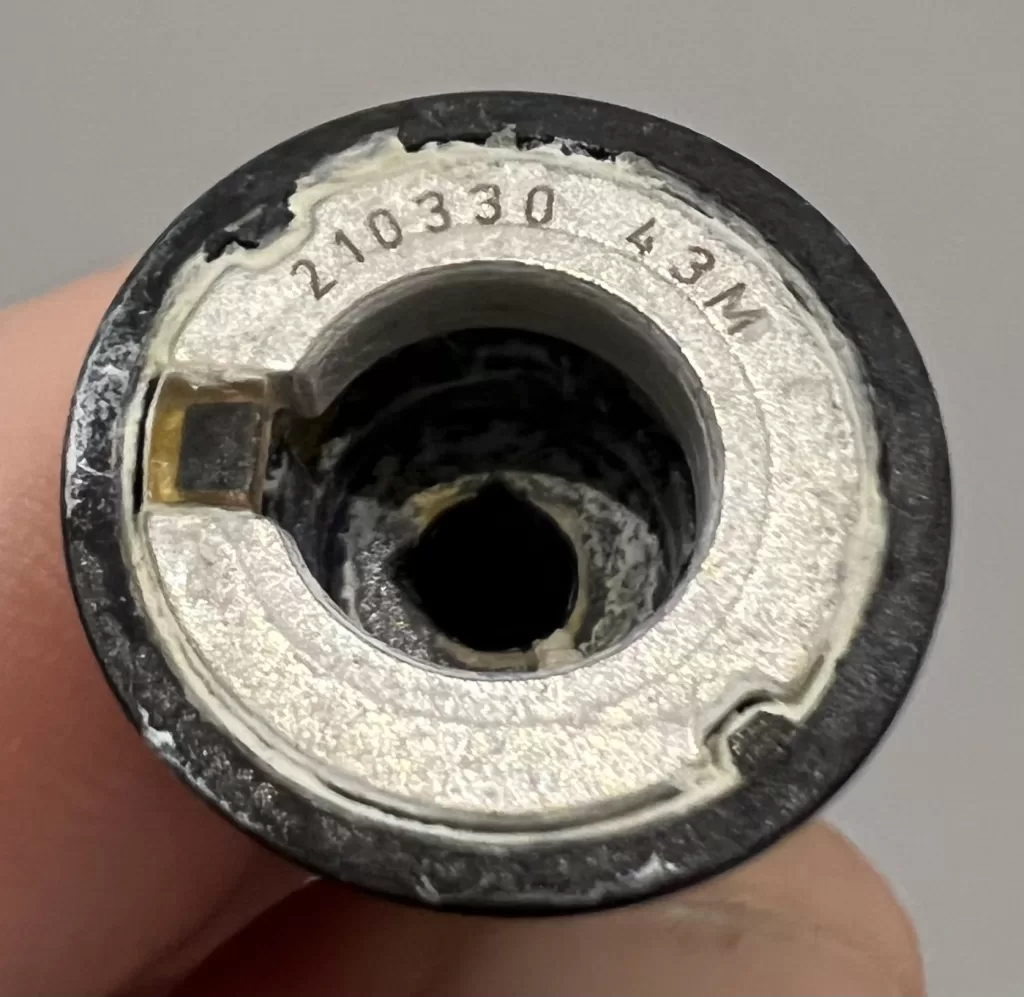 Nyní potřebujeme kód produktu. Toto je vytištěno na kovovém ráfku na základně hlavy: